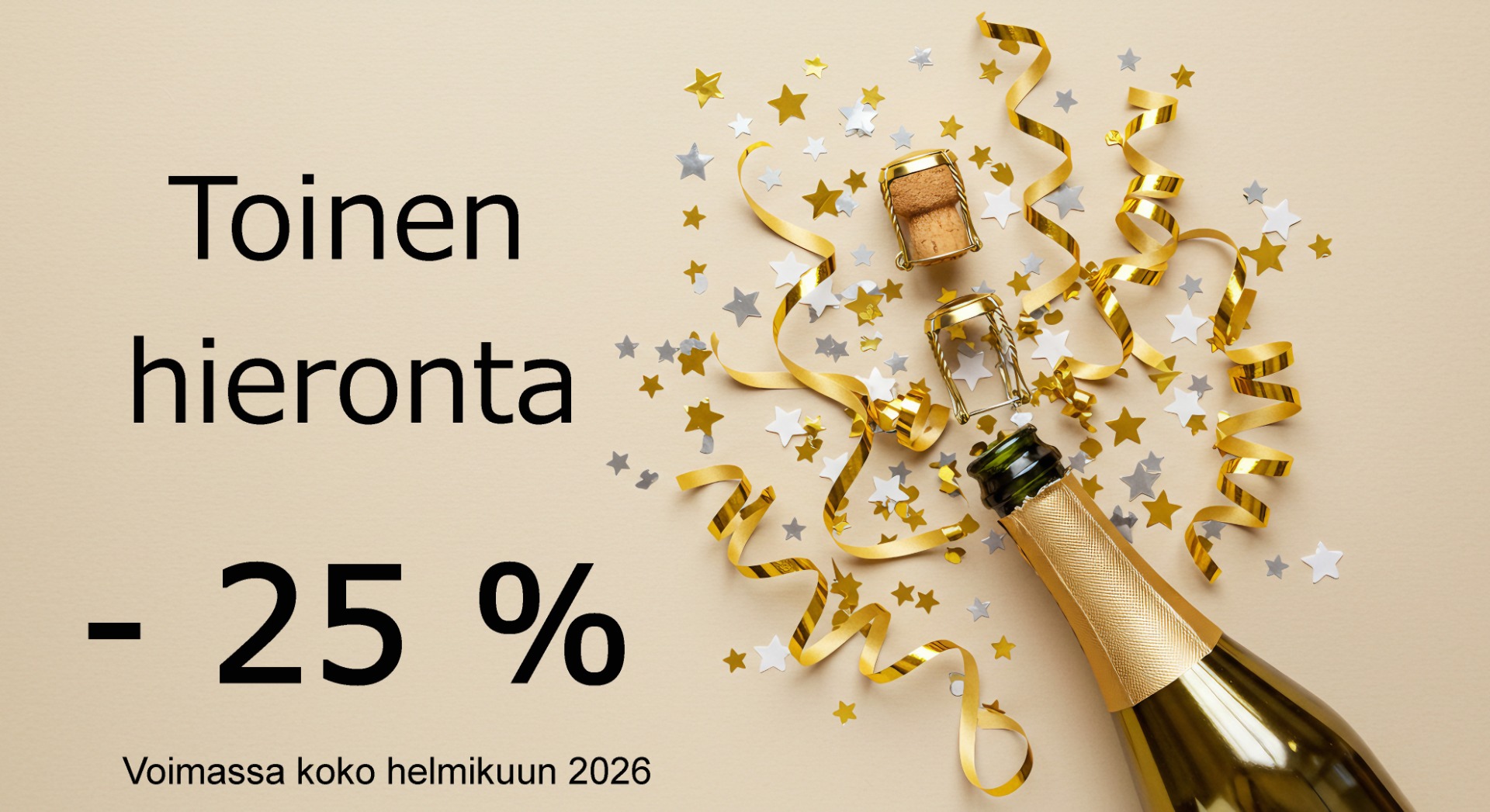 Käytyäsi normaalihintaisessa hieronnassa saat toisen saman kestoisen hieronnan -25% !